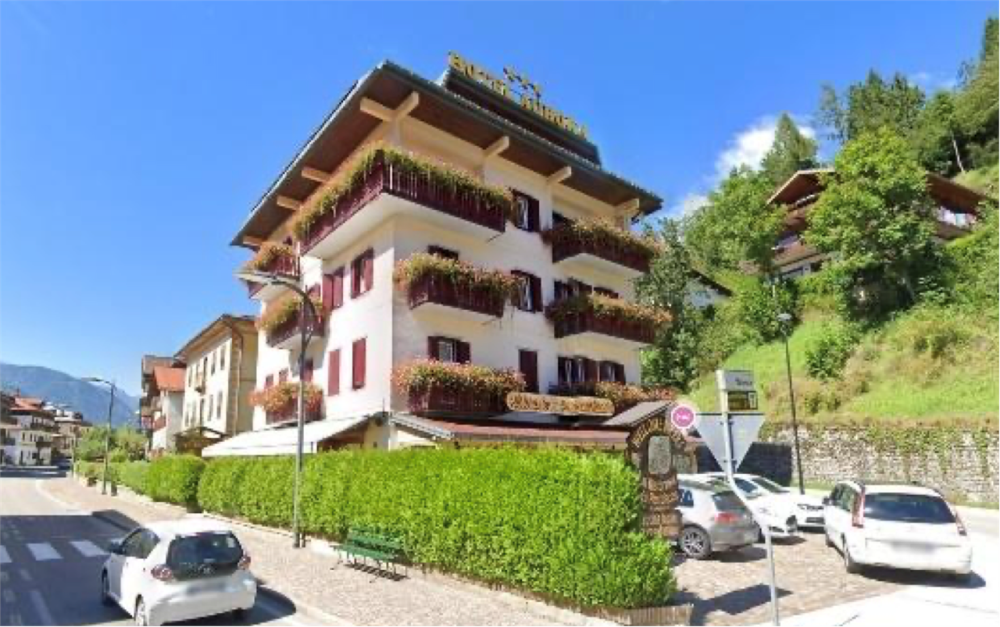 Fabbricato ad uso albergo situato nel comune di Auronzo di Cadore (BL) in via Unione, sviluppato su cinque piani fuori terra e dotato di uno scoperto adibito a posti auto. Si compone al piano terra da reception, sala da pranzo, cucina con depositi, bagni, vano ascensore e centrale termica; al piano primo da locali accessori, una camera e unità abitativa ad uso privato; al piano secondo da sette camere con bagno ed alcune con terrazzo; al piano terzo da cinque camere con bagno, alcune con terrazzo; al piano quarto (sottotetto) da sei camere con bagno.