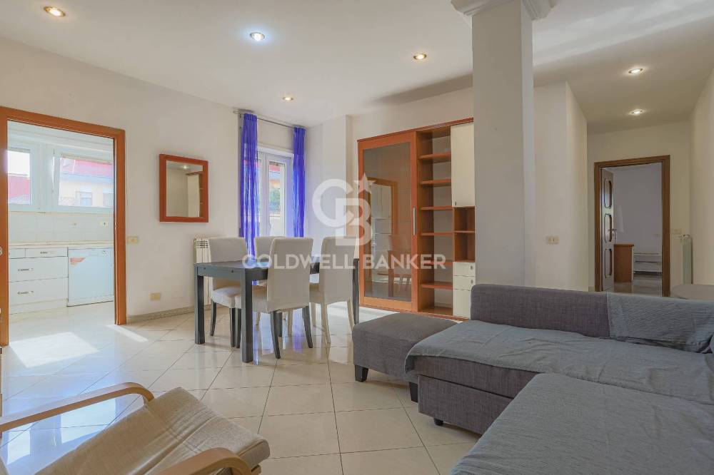 La distribuzione interna degli ambienti è ben studiata: lingresso si apre su un ampio salone a vista, luminoso e accogliente, con accesso a un balcone affacciato sul giardino condominiale.