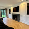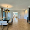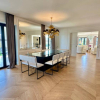 La sala da pranzo è spaziosa, progettata per accogliere un grande tavolo, perfetto per eventi di rappresentanza. A fianco della zona pranzo, una cucina di design realizzata artigianalmente, dotata di isola centrale in marmo orobico e attrezzata con elettrodomestici all'avanguardia, completa l'area living. Un pratico storage organizza gli spazi, rendendo l'ambiente funzionale e ordinato.