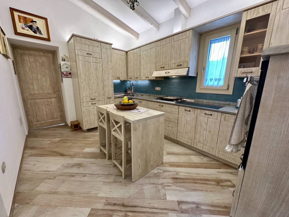 La cucina moderna e completamente attrezzata, con funzionale vano dispensa, si apre sul living, creando un ambiente conviviale e perfetto per la vita quotidiana o per ospitare amici e famiglia.