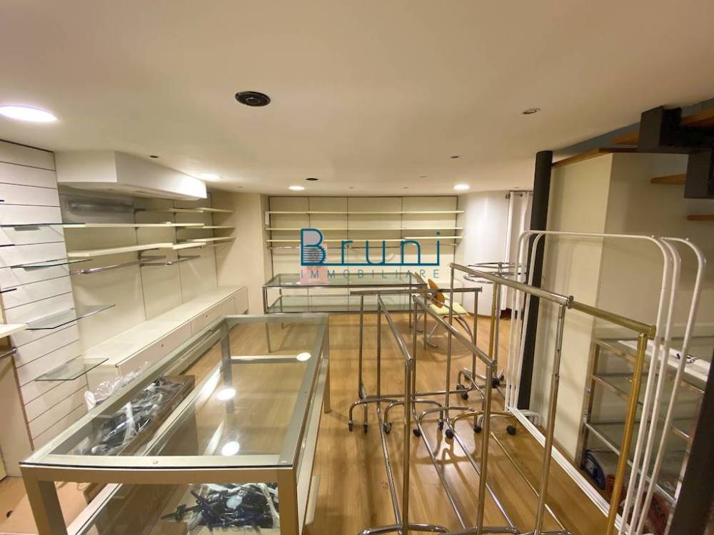 Composto da: unico locale con due vetrine esposte su fronte strada ad alto passaggio veicolare, più due porte d'ingresso, oltre a soppalco di circa 70 mq ideale per magazzino o ufficio, un bagno con antibagno.