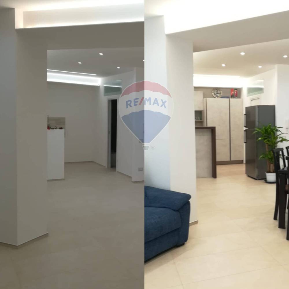 L'immobile si apre su un ingresso-guardaroba ed un luminosissimo living, spazioso ed accogliente con arredi su misura e controsoffitti con led ad incasso su tutta la superficie. Una finestra e un balcone. La zona cucina è completamente attrezzata con elettrodomestici di fascia medio alta unico marchio, piani di lavoro in Okite e cappa con impianto autonomo di aspirazione. L'immobile si completa con tre comode camere nella zona notte: una con finestra e balcone, le altre due con grandi finestre ed armadi a muro. Due bagni: Bagno padronale nella zona notte con vasca e doccia, rivestimento unico. Secondo bagno completo, nella zona giorno con doccia e lavanderia. Grande rispostiglio.