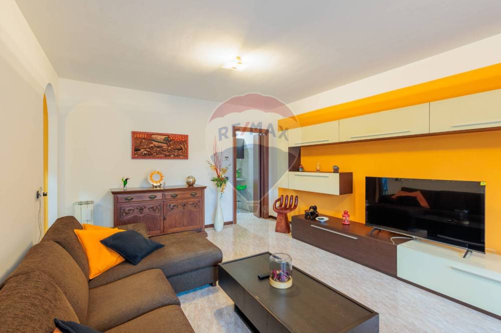 Ingresso al primo piano sul grande e luminoso soggiorno di 26 mq, da cui si procede alla cucina di 8 mq. Il soggiorno è dotato di finestra e porta finestra esposta verso est con accesso al balcone di 6,5 mq, di forma squadrata, ideale per pranzi e cene all'aperto.