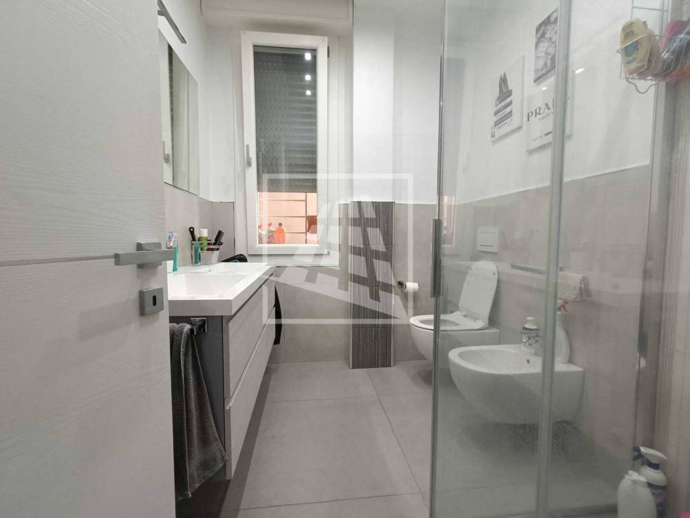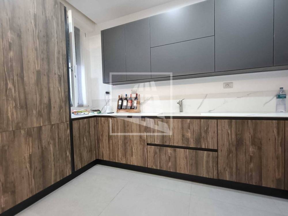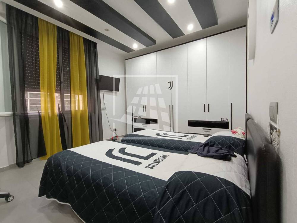 L'immobile è composto da sala con cucina open space, balcone, disimpegno con armadiature per lavatrice e asciugatrice, tre camere da letto, due bagni finestrati.