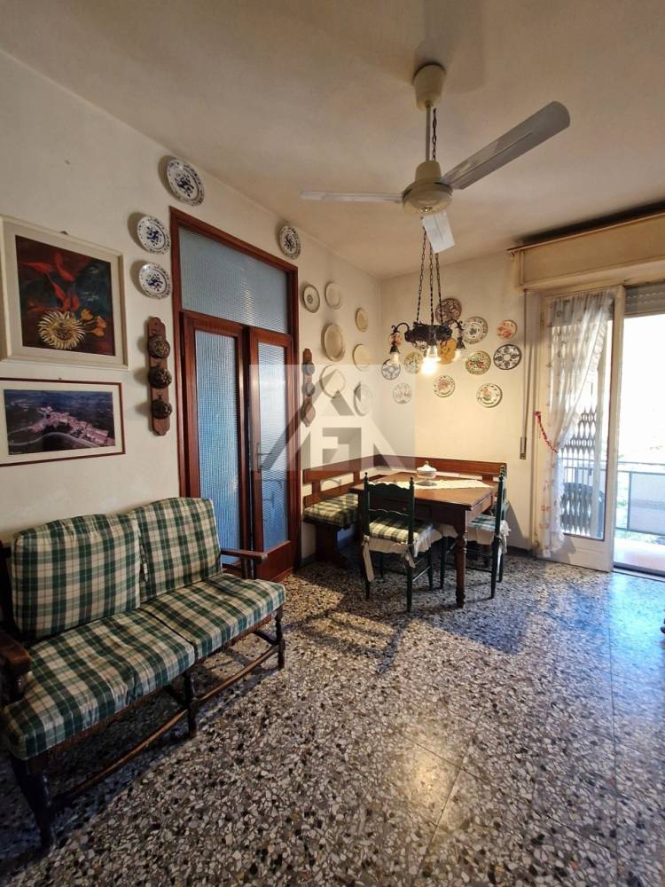 S. Anna, in edificio in buone condizioni con facciata e tetto rifatti degli anni 70 luminoso appartamento posto al piano 3° con ascensore di mq. 130, si compone di ingresso con disimpegno, ripostiglio, ampio salone con balcone, cucinotto chiuso con balcone, 3 camere, bagno, termo-singolo metano, garage con un posto auto. Impianti e finiture dell'epoca di costruzione. Spese condominiali € 80 mensili.€ 250.000 rif. 6390