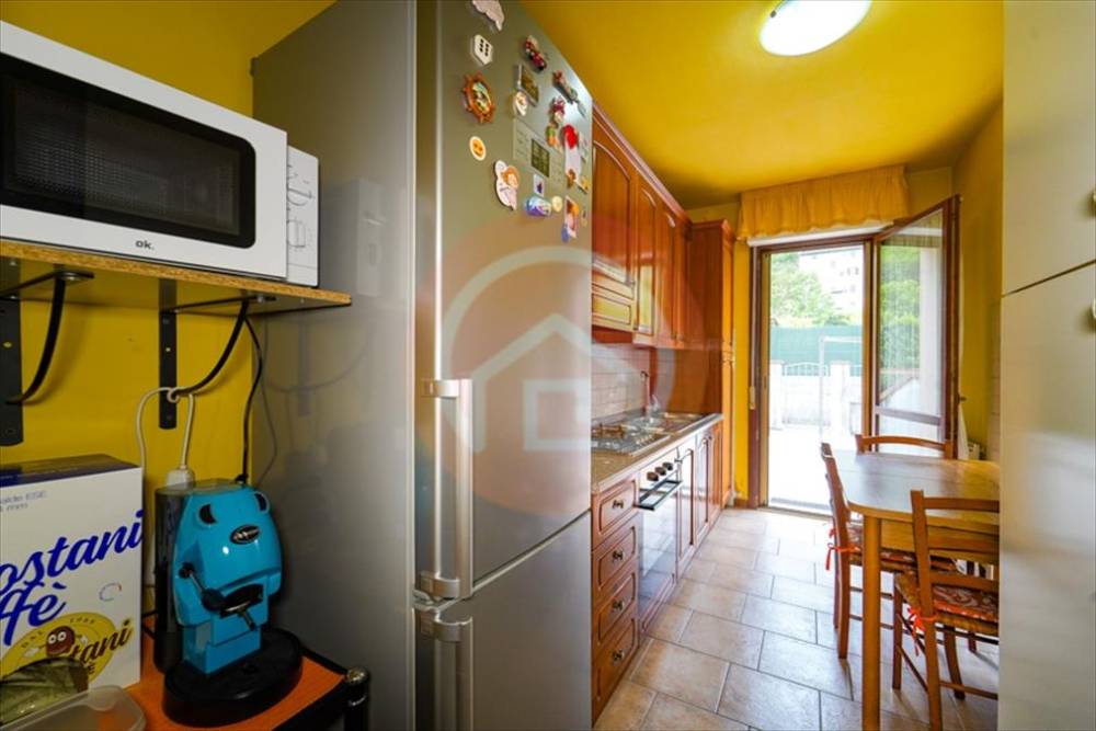 Al piano terra, la zona giorno si compone di un ampio salotto e un soggiorno luminoso, ideali per momenti di relax e convivialità. La cucina, funzionale, è dotata di accesso diretto al giardino piastrellato, curato dal proprietario, perfetto per cene all'aperto e momenti di svago.