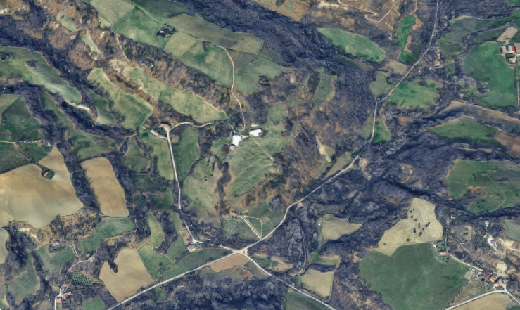 -Terreni agricoli di un unico corpo dove insistono l'Ovile sopracitato    per una superficie complessiva di ettari 24.22.88 mq 242.288. I terreni agricoli sono nella minor parte coltivabili e restante parte boschivi.