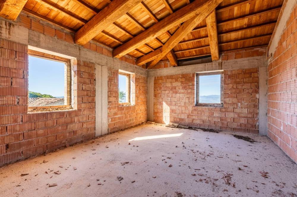 Il piano terra, di circa 250 mq è pensato per ospitare la zona giorno ed è già predisposto per la realizzazione di un portico o di una serra solare di circa 80 mq. Il primo piano, della stessa metratura, è stato progettato per accogliere cinque camere di generose dimensioni, ciascuna con bagno en-suite, ed è caratterizzato da un magnifico soffitto in legno di castagno che raggiunge unaltezza di oltre quattro metri e mezzo nel punto più alto.