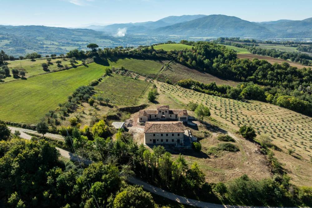 Situata in posizione dominante e baciata da una vista mozzafiato sulle colline della Val Tiberina, questa straordinaria proprietà è composta da due casali in pietra immersi in circa 8 ettari di terreno, arricchiti da oltre 3000 ulivi e da un incantevole vigneto in piena produzione.