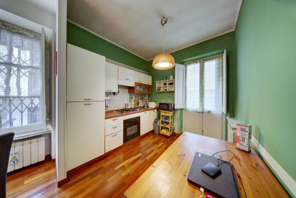 Limmobile è composto da ingresso living su ampia sala con camino in marmo, cucina abitabile, una camera da letto, angolo scrivania, bagno, ripostiglio e due balconi, di cui uno con l'affaccio sull'interno cortile e l'altro su via Piffetti. La tripla esposizione garantisce ambienti luminosi e ariosi. Tra le dotazioni troviamo impianto di condizionamento, infissi con doppi vetri, inferriate di sicurezza, armadio a muro e antifurto.