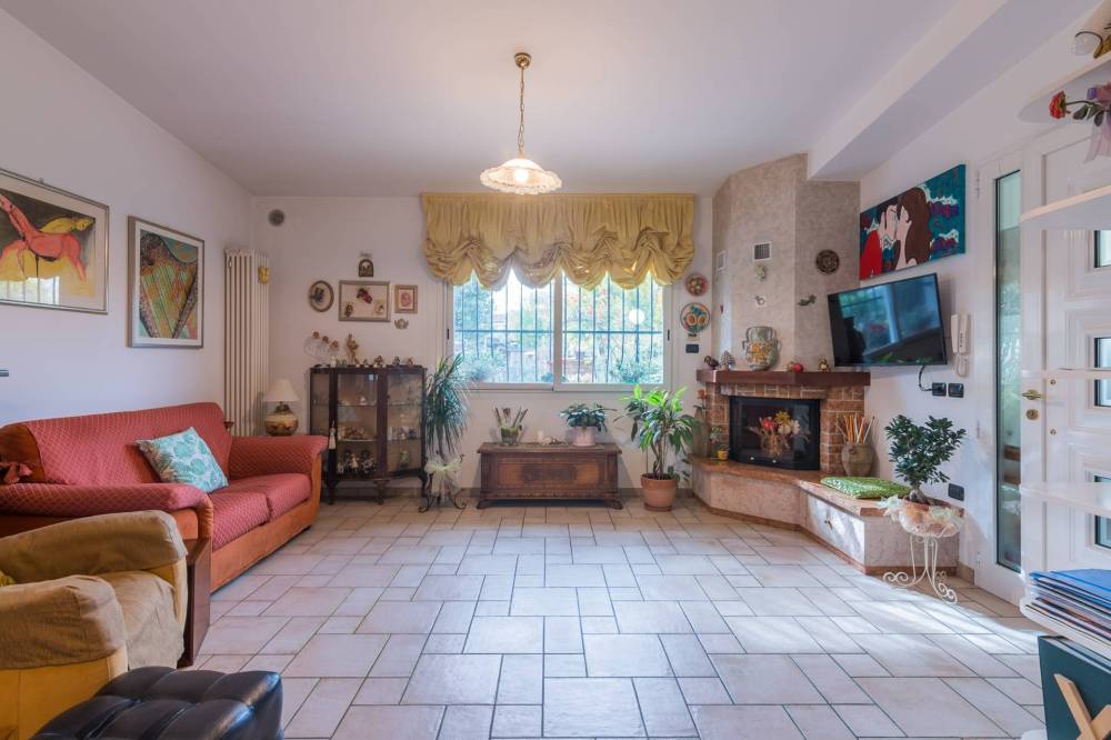 La casa si sviluppa comodamente su un unico livello: lingresso conduce a un ampio soggiorno, arricchito da un camino, che invita a rilassarsi fra comfort e convivialità.