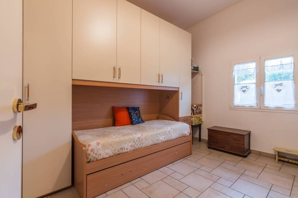 La zona notte accoglie una camera matrimoniale luminosa e una camera singola ampia, perfetta come stanza dei giochi, studio o camera per gli ospiti.