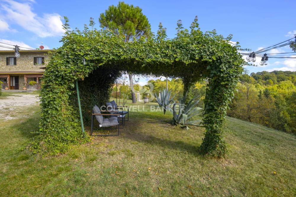 La proprietà è circondata da un parco di 90.000 mq; la piscina panoramica offre uno spazio ideale per rilassarsi, godendo della vista sulle colline umbre e toscane. A corredo della proprietà,è presente una bellissima tartufaia con ben 500 piante di noccioli, ed un ettaro di oliveto con 90 piante.