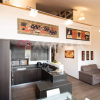 Si accede direttamente tramite disimpegno da cui a sinistra, scendendo un paio di scalini si viene accolti da uno spazio openspace luminoso e conviviale, con zona soggiorno e cucina ad isola con angolo sala da pranzo. Arricchisce l'ambiente un'ampia terrazza vivibile.