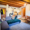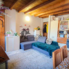 Le travature a vista in tutto l'appartamento lo rendono un ambiente caldo e accogliente.