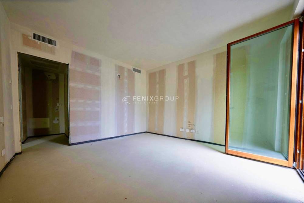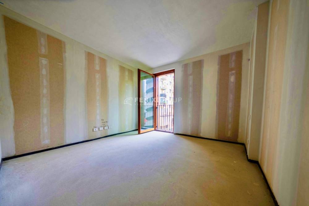 L’appartamento si apre su un ingresso con disimpegno che conduce all’ampio soggiorno con cucina a vista e accesso al balcone con affaccio esterno. Adiacente si trova la camera matrimoniale e un bagno finestrato completo di box doccia in cristallo.