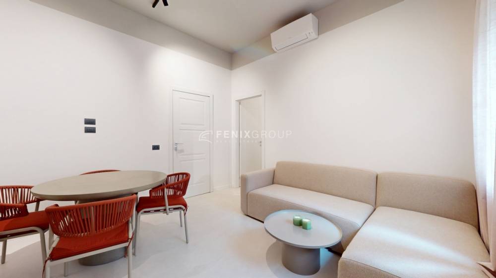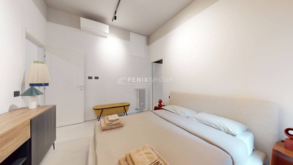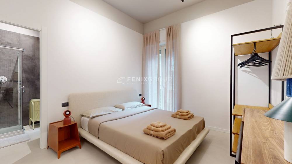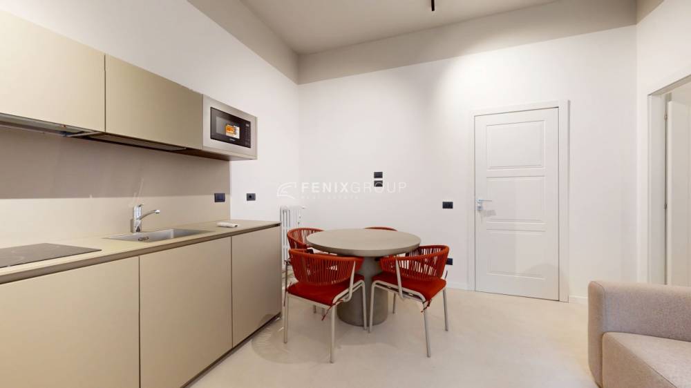 L’appartamento, recentemente ristrutturato a nuovo, si apre su un luminoso soggiorno con cucina a vista dal design moderno e funzionale. La zona notte è composta da una spaziosa camera da letto con porta finestra che conduce a un balcone, offrendo uno spazio esterno riservato e piacevole. Il bagno, finestrato e completo di doccia, presenta finiture eleganti e di ottima qualità.