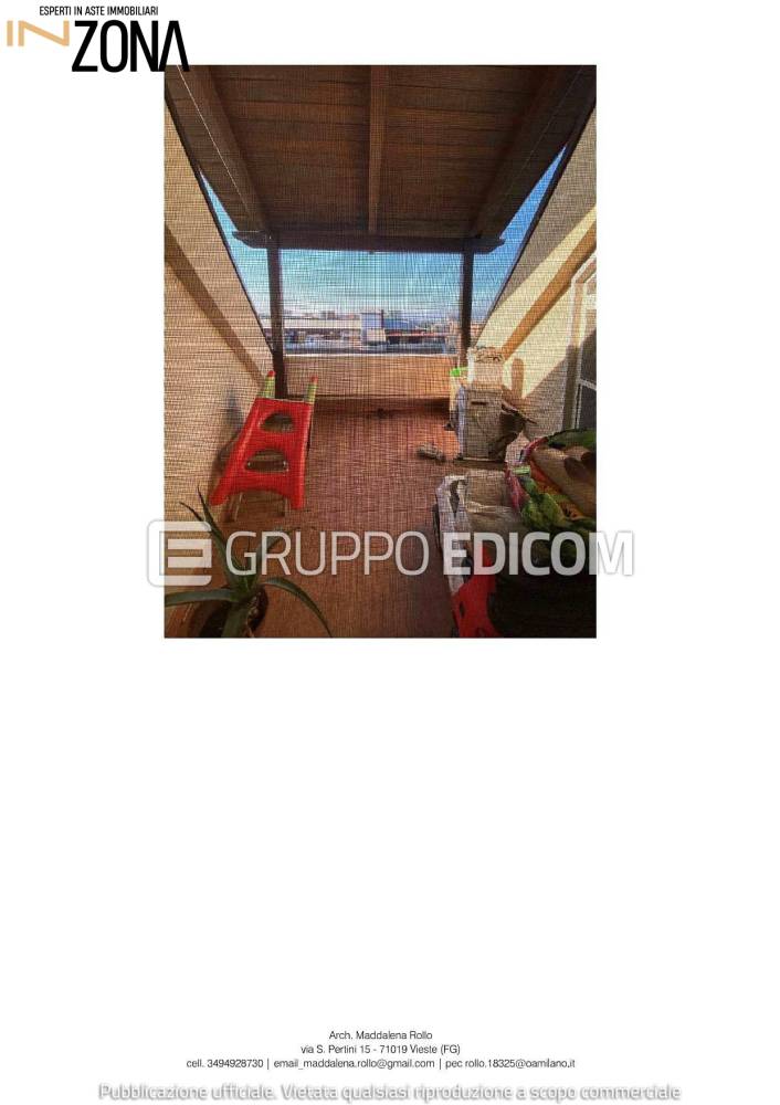 ASTA .---- prezzo and euro; 57.000,00 --- risparmio and euro;18.000nAppartamento al piano nono sottotetto, interno 25 con una superficie commerciale di 80 mq. L'abitazione è caratterizzata da tre vani utili, cucina, un bagno e tre terrazzini a tasca. L'appartamento è caratterizzato da un ingresso sulla zona giorno sulla quale si affacciano la cucina, due camere da letto, il bagno e il ripostiglio. Essendo un sottotetto il soffitto è caratterizzato da una parte piana e da una parte spiovente con altezza minima interna pari a circa mt. 1,15. Classe energetica G.nnData venditan17/12/2025 - 17:00nnPrezzo basen and euro; 75.500,00nOfferta miniman and euro; 57.000,00nnTi piacerebbe comprare una casa all'asta ma non sai come fare perché non sei un esperto?nnContattaci per avere maggiori informazioni su questo immobile e su come poterlo acquistare in totale sicurezza.nnINZONA offre un servizio di ASSISTENZA TECNICO - LEGALE per l'acquisto di immobili in asta attraverso queste attività:nnPRIMA CONSULENZA: Appuntamento presso la nostra sede di Foggia, presso il Centro direzionale E9 in Via Donato De Leonardis, 2 - 71121 Foggia (FG), per offrire chiarimenti sulle aste ed ascoltare le tue esigenze immobiliari.n- Mediazione creditizian- studio fattibilità per la partecipazione in asta con mutuo fino al 100%n- Studio della perizia e della documentazione dell'immobilen- Accertamenti catastali per eventuali abusi edilizin- Accompagnamento Visita Immobilen- Disbrigo pratiche per la partecipazione all'asta (anche solo compilazione della domanda)n- Rappresentanza Legale il giorno della venditan- Rilascio del decreto di trasferimento in tempi brevin- Assistenza per il Saldo Prezzon- Compilazione F24 per Tassen- Disbrigo Pratiche per Eventuale Sanatorian- Assistenza alla Consegna ImmobilennContattaci per avere maggiori informazioni sull'immobile e su come partecipare all'asta.nnnnn