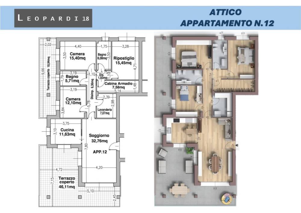 RESIDENZA LEONARDO è un contemporaneo edificio residenziale, posto in una zona strategica di Parabiago, a pochi minuti a piedi dal centro e dalla stazione ferroviaria.nIl progetto, sviluppato per distinguersi e soddisfare le persone più esigenti, vanta finiture di alta qualità, attenzione ai particolari architettonici-costruttivi e impianti tecnologici all'avanguardia quali impianto fotovoltaico, impianto di riscaldamento e raffrescamento radiante a pavimento mediante pompa di calore, impianto di deumidificazione canalizzato, impianto domotico di serie, oltre impiego di materiali di ultima generazione come isolamenti verticali e orizzontali, serramenti ad elevata prestazione termo-acustica e altri aspetti costruttivi che consentiranno alla Residenza LEONARDO il raggiungimento della certificazione energetica in classe A4.nGli appartamenti, studiati per garantire un'ottima qualità di vita, risultano essere luminosi per mezzo delle ampie vetrate, comodi per le grandi metrature e per la funzionalità degli spazi interni e vivibili anche nelle aree esterne di proprietà, con le favolose terrazze coperte abitabili ed usufruibili nella bella stagione, talmente grandi che sarà possibile arredarli sia come un'ambiente relax sia come un dehor, dove poter trascorrere pranzi, cene e momenti conviviali stando piacevolmente all'aperto.nTutti questi aspetti rendono RESIDENZA LEONARDO un'esperienza abitativa all'insegna del comfort, della raffinatezza di casa moderna, accogliente e di alto valore.nDisponibili 13 abitazioni suddivise in 4 tipologie di appartamenti: bilocali, tre locali, quattro locali ed esclusivi attici di tripla esposizione panoramici.nATTICO PIANO QUARTO- ULTIMOnUNITA' 12 - and euro; 465.000 - ATTICO di QUATTRO LOCALI di 150 mq, TRIPLA ESPOSIZONE. QUATTRO LOCALI con CUCINA ABITABILE o LIVING OPEN SPACE, DUE BAGNI FINESTRATI, LOCALE LAVANDERIA e DUE FAVOLOSE TERRAZZE di 46 mq e di 19 mq. Esposizione Est-Sud-Nord.nBOX SINGOLO da and euro; 25.000nBOX DOPPI da 35.000 and euro; a 39.000 and euro;nCANTINE and euro; 5.000nCONSEGNA SETTEMBRE 2027n - Maggiori Dettagli: Climatizzato, Porta blindata, Cucina Abitabile, Insonorizzazione