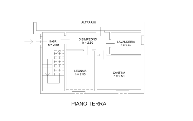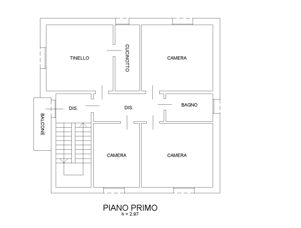 Unità residenziale e servizi accessori che si sviluppa  ai piani terra, primo e sottotetto, oltre ad area cortiliva di pertinenza sistemata a giardino con sviluppo sui quattro lati.  Al piano terra troviamo un disimpegno, zona lavanderia, cantina. Al primo piano troviamo tre camere, cucinotto, bagno , balcone e alcuni disimpegni; al secondo piano sottotetto troviamo uno spazio soffitta.