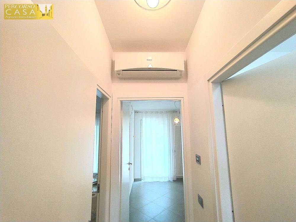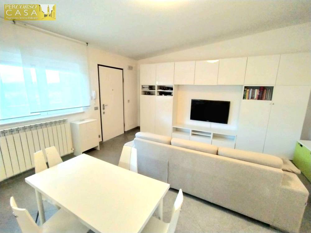 L'immobile, situato al 1° piano di un complesso residenziale realizzato nel 2010 e privo di ascensore, è in ottime condizioni e presenta le seguenti caratteristiche: pavimentazione in gres, infissi in alluminio con doppi vetri, zanzariere e tapparelle in pvc (la tapparella del soggiorno è automatizzata), impianto di condizionamento inverter, impianti a norma, predisposizione per impianto di allarme e porta di ingresso blindata.