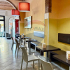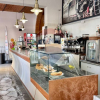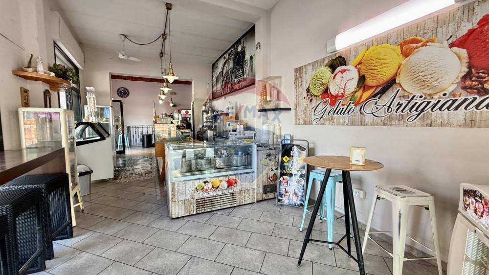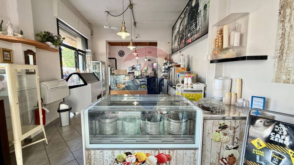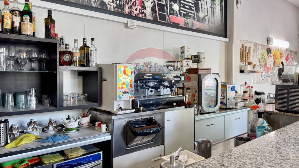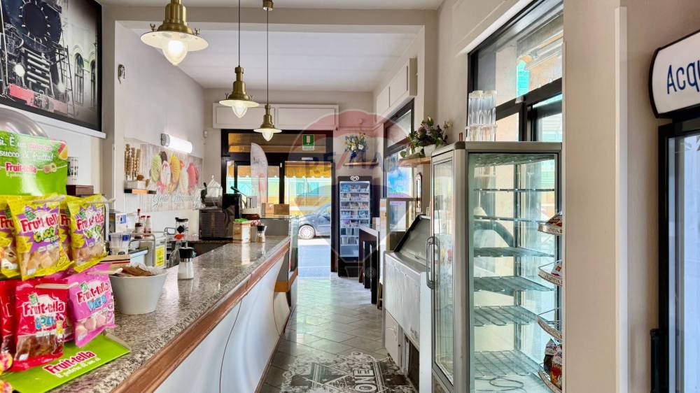 Lambiente interno si sviluppa su una superficie calpestabile di circa 105 mq al piano terra, così distribuiti: Lungo bancone bar attrezzato, bancone per gelati, forno elettrico per la preparazione di schiacciate, pizze al taglio e prodotti da forno, sala clienti con angolo slot dotato di 4 macchinette regolarmente autorizzate.