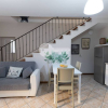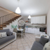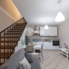 L’abitazione si apre sulla zona giorno, composta da soggiorno con cucina a vista e pratico spazio lavanderia ricavato nel sottoscala.