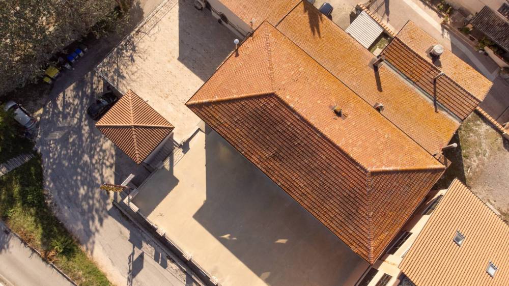Il complesso nasce da un ex fienile storico del 1904, sapientemente conservato nei suoi elementi architettonici più caratteristici, a cui si affianca una porzione edificata negli anni 70. Laccesso avviene attraverso lampio terrazzo, ideale per eventi, degustazioni o attività allaperto; da qui si entra nella grande sala principale, con soppalco a vista, camino, forno a legna, altezze importanti e travi a vista, che donano calore e unicità allambiente.