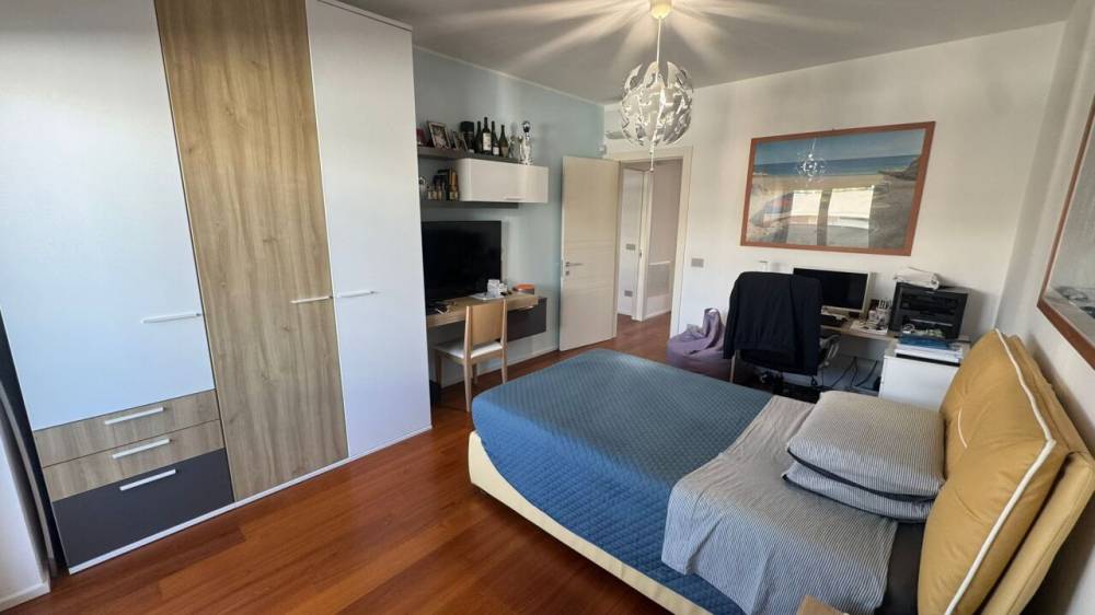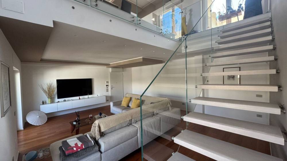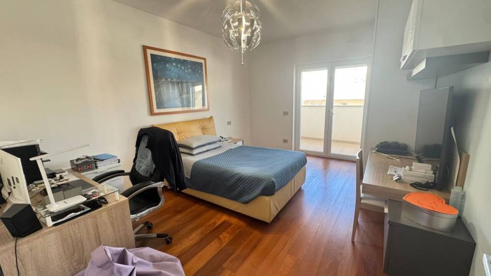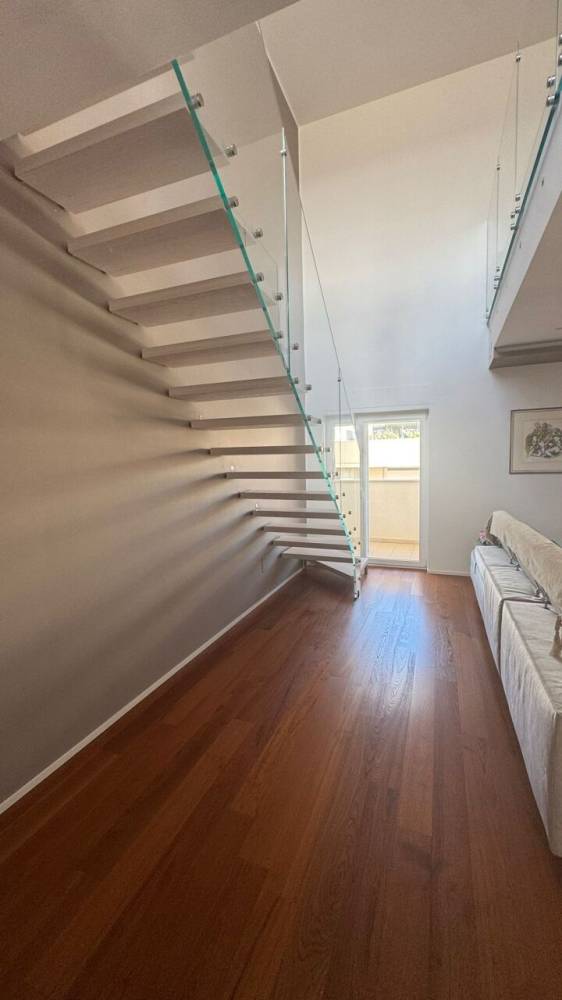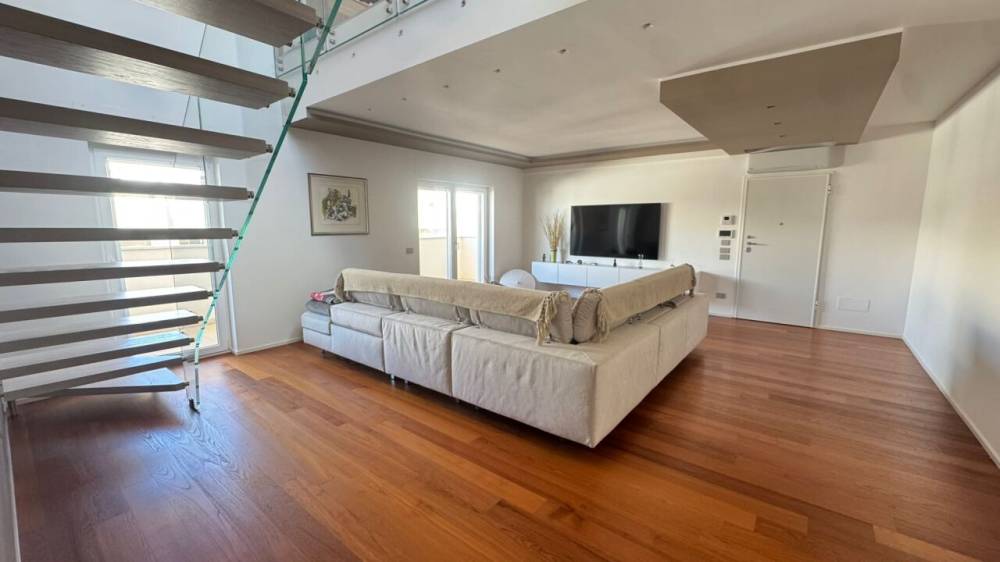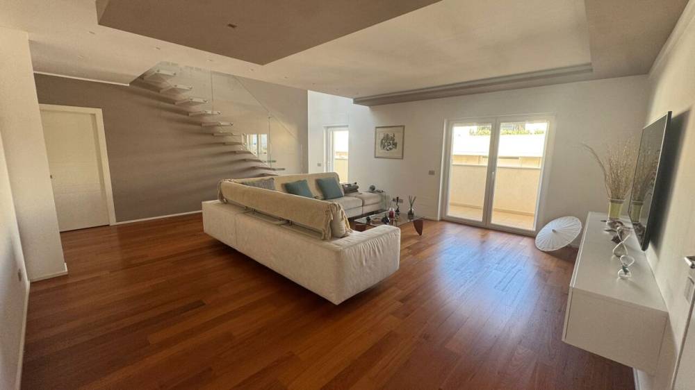 Periferia Sud, zona in forte espansione, proponiamo in vendita prestigioso attico di recente costruzione con terrazzo di esclusiva proprietà. E’ composto al quarto piano da ingresso su bellissima zona living con accesso a veranda, due ampi vani letto di cui la matrimoniale con bagno in camera, cabina armadio ed ulteriore bagno. Tramite elegante scala interna con balaustre in vetro ed illuminazione si accede al piano superiore, composto da soggiorno pranzo con cucina a vista ed accesso al pezzo forte della casa: ampia terrazza al livello con vista mare, perfetta per godersi momenti di relax all’esterno; completa il piano superiore un ulteriore bagno con zona lavanderia. Il tutto in perfetto stato di manutenzione con rifiniture di pregio: parquet Tek, sanitari Gessi e Antonio Lupi, controsoffittatura con faretti a led, riscaldamento a pavimento, aria condizionata in tutti gli ambienti, videocitofono ed impianto d’allarme. La comoda metratura interna permette la realizzazione della terza camera da letto, inoltre ogni piano ha il proprio accesso privato tramite porta blindata ed è dotato di impianti termici ed elettrici indipendenti. Non ultimo per importanza, l’immobile è completo di box auto di 35 mq posto al piano seminterrato. Ottima occasione!