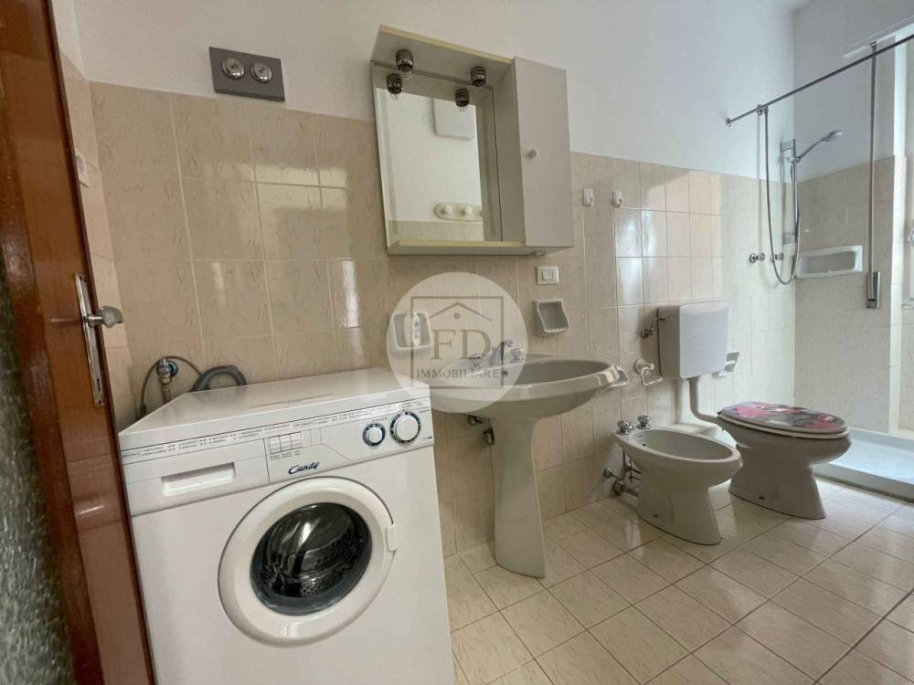 L’appartamento è composto da un ingresso, un corridoio, un tinello (divano letto) con cucinino, una camera da letto (matrimoniale + castello), un bagno finestrato con doccia, un ripostiglio e due balconi.
