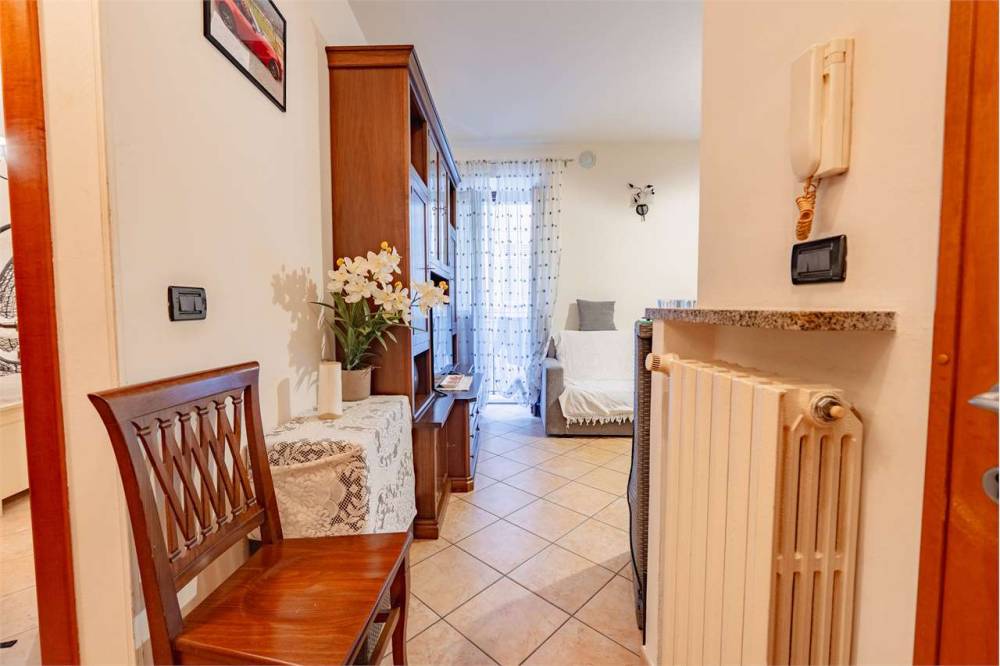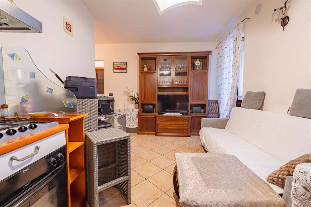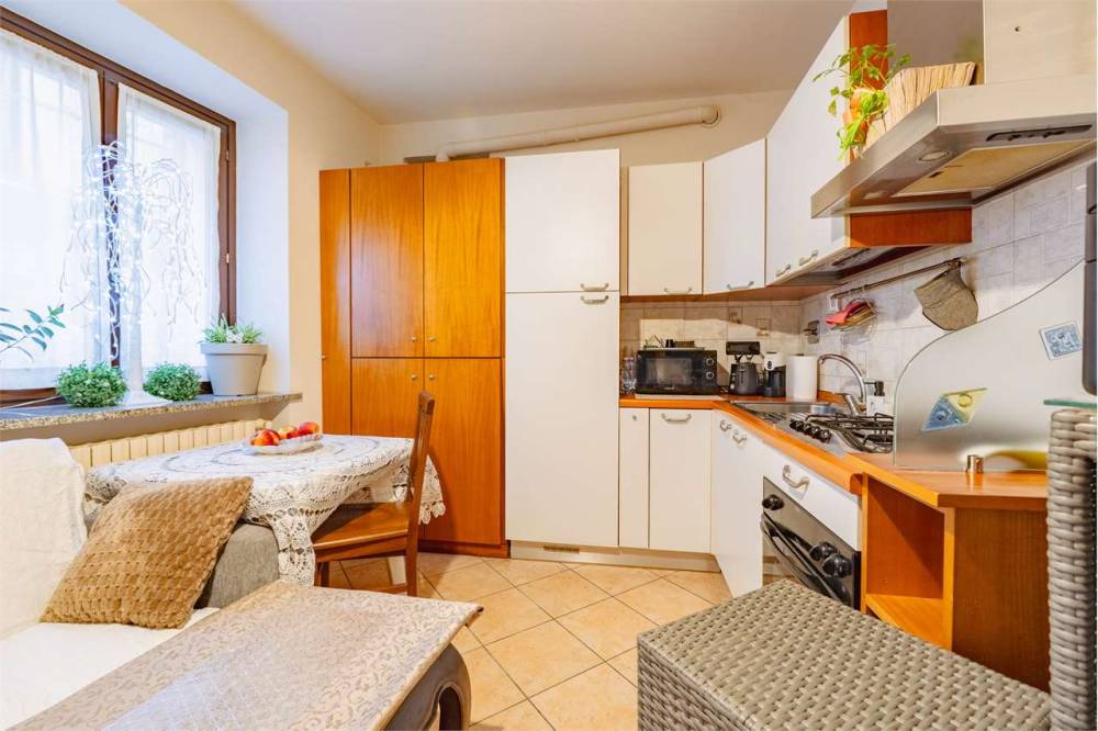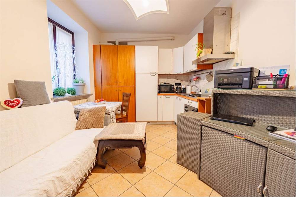 L'ingresso si apre su un soggiorno con angolo cottura che gode della presenza di una canna fumaria, perfetta per installare una stufa a pellet oltre al riscaldamento autonomo a metano con termosifoni in ghisa. Completano la proprietà una camera matrimoniale, un bagno e due balconcini affacciati sulla via principale. Gli infissi sono in legno con doppio vetro e garantiscono un buon isolamento.