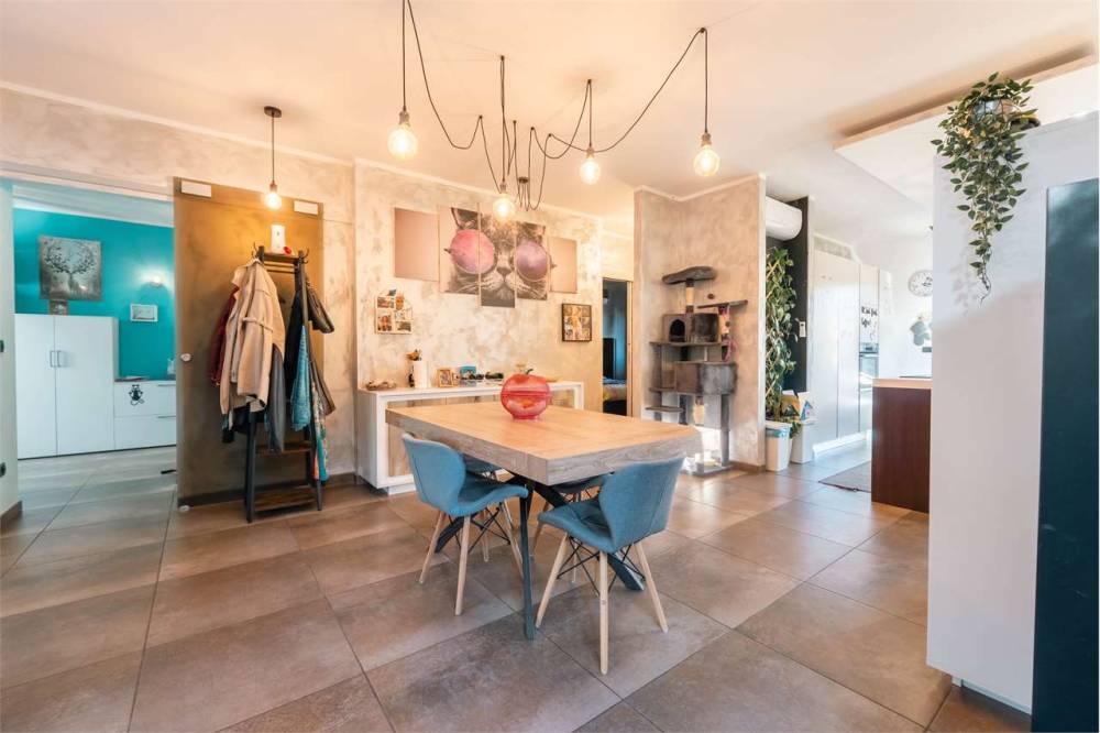 L'ingresso conduce a un'ampia e luminosa zona giorno con cucina a vista e soggiorno, un ambiente ideale sia per i momenti conviviali che per il relax quotidiano. La zona notte comprende due camere da letto e due bagni: uno con finestra e vasca, l'altro collegato alla camera matrimoniale e dotato di doccia.