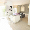 luminoso soggiorno open-space con zona living e cucina completa di elettrodomestici;