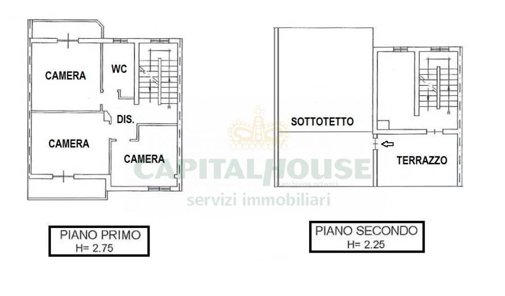 -piano secondo: 15mq terrazzo + 34mq di sottotetto;