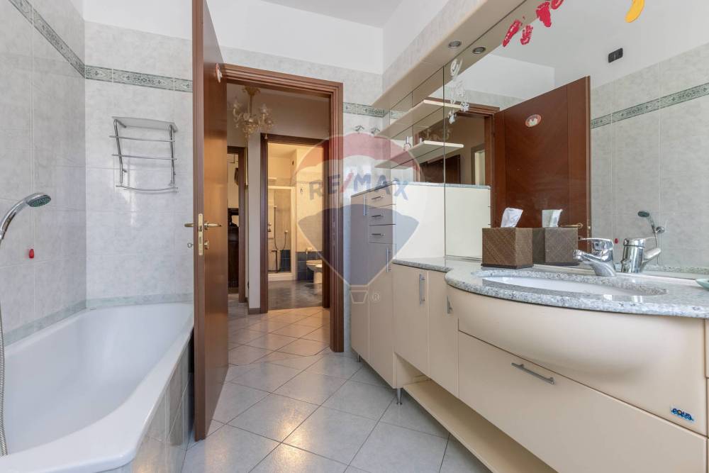 Limmobile, in ottimo stato di conservazione, offre una superficie di 107 mq sapientemente distribuita: ingresso, ampio soggiorno con grande vetrata e accesso diretto al giardino privato, cucina separata, ripostiglio, un'ampia camera matrimoniale con grande cabina armadio, cameretta di metrature generose e doppi servizi uno con doccia e l'altro con vasca da bagno.