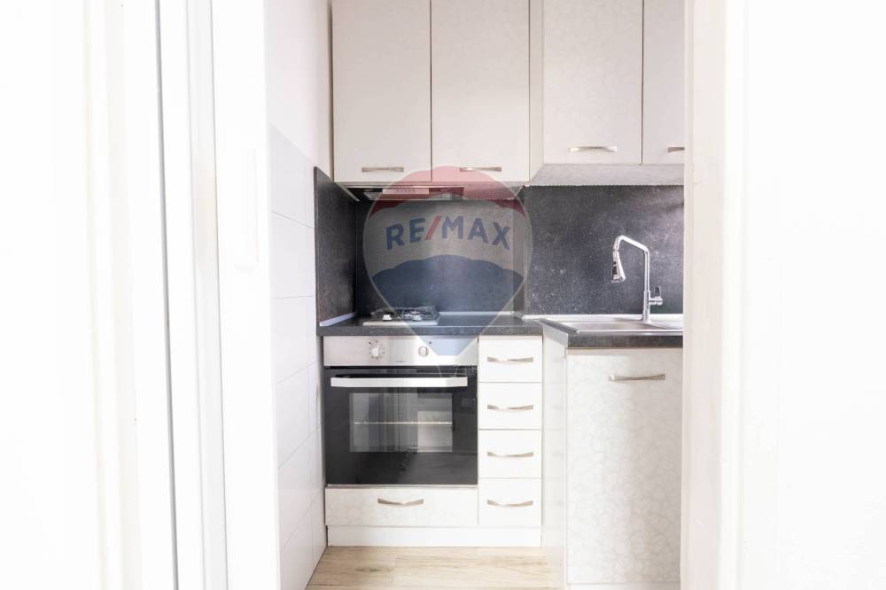 L’ingresso conduce a un pratico disimpegno che introduce nel soggiorno con angolo cottura, moderno e funzionale, completo di tutti gli elettrodomestici.