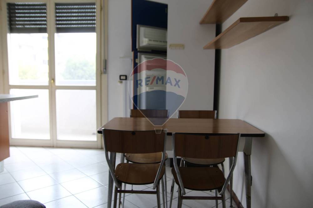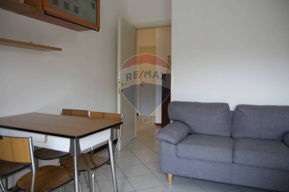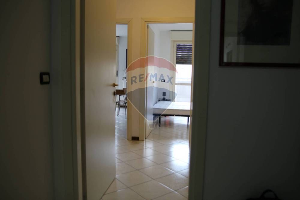 disimpegno di ingresso da cui si accede al luminoso soggiorno con cucinotto attrezzato e portafinestra che porta al balcone perimetrale con loggia terminale ottima per pranzare o godersi momenti di relax, sempre dal disimpegno si accede alla camera matrimoniale anche questa dotata di porta finestra che accede al balcone, ed infine al bagno cieco con aspiratore e dotato di doccia.