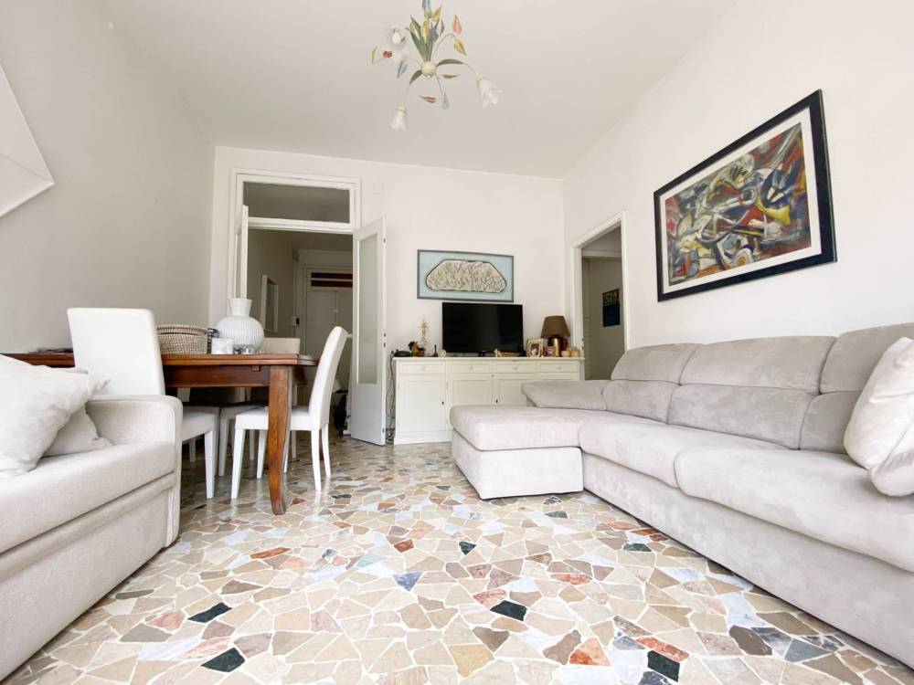 L'appartamento è composto da ingresso che porta al soggiorno luminoso, cucina abitabile separata, tre camere da letto, di cui due matrimoniali e una singola, un bagno con il boiler per l'acqua calda, e un bellissimo pavimento terrazzo alla veneziana nella zona giorno. Completa la proprietà una cantina al piano terra e una terrazzo ampio. Non è presente un garage.