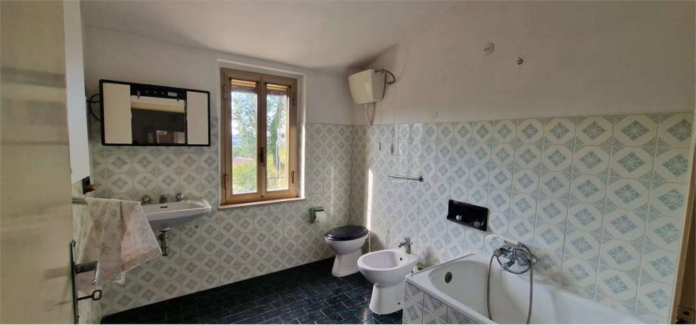 Il piano terra è composto da un ampia cucina abitabile con camino e dispensa, una camera da letto matrimoniale ed un bagno finestrato.