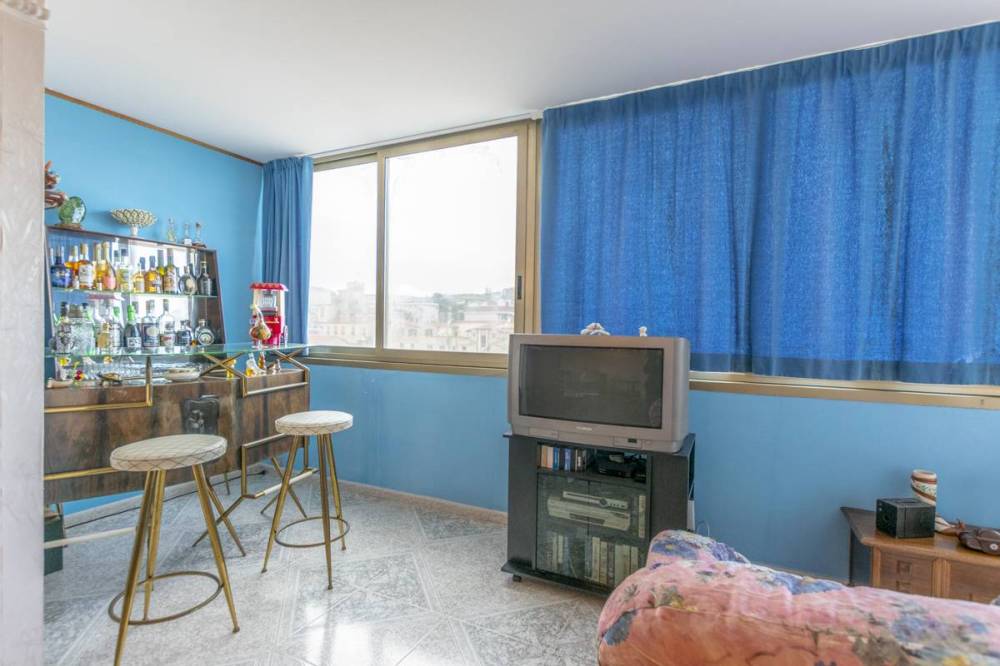 Soggiorno spazioso con veranda luminosa e angolo bar, cucina , tre camere matrimoniali ( o due camere e un ampio studio, due bagni , terrazzo panoramico con scorcio sul centro città , corridoi e disimpegni vari .