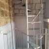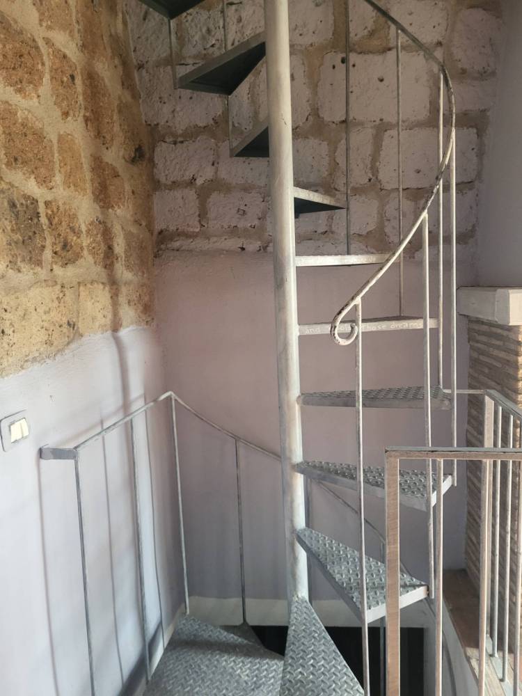 La scala a chiocciola in ferro collega i tre piani.