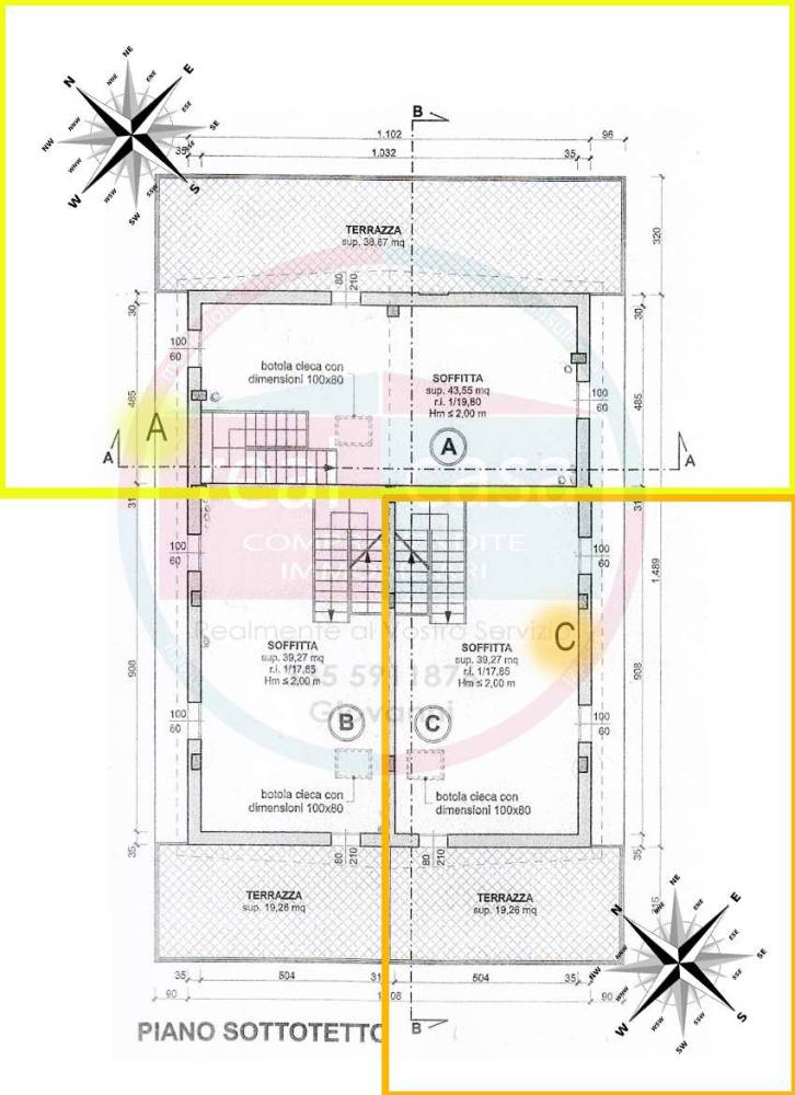 Villa A: 312 M2 commerciali su tre livelli oltre a mansarda abitabile e con area cortiliva di pertinenza di circa 170 M2.