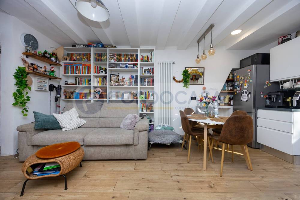 Bilocale di 53mq, distribuito su due livelli e rinnovato nel 2021, composto da ingresso diretto su zona giorno con angolo cottura, avente accesso ad un bellissimo GIARDINO PRIVATO di 20mq al piano terra e da una camera da letto ed un bagno finestrato al primo piano, accessibile tramite scala interna.