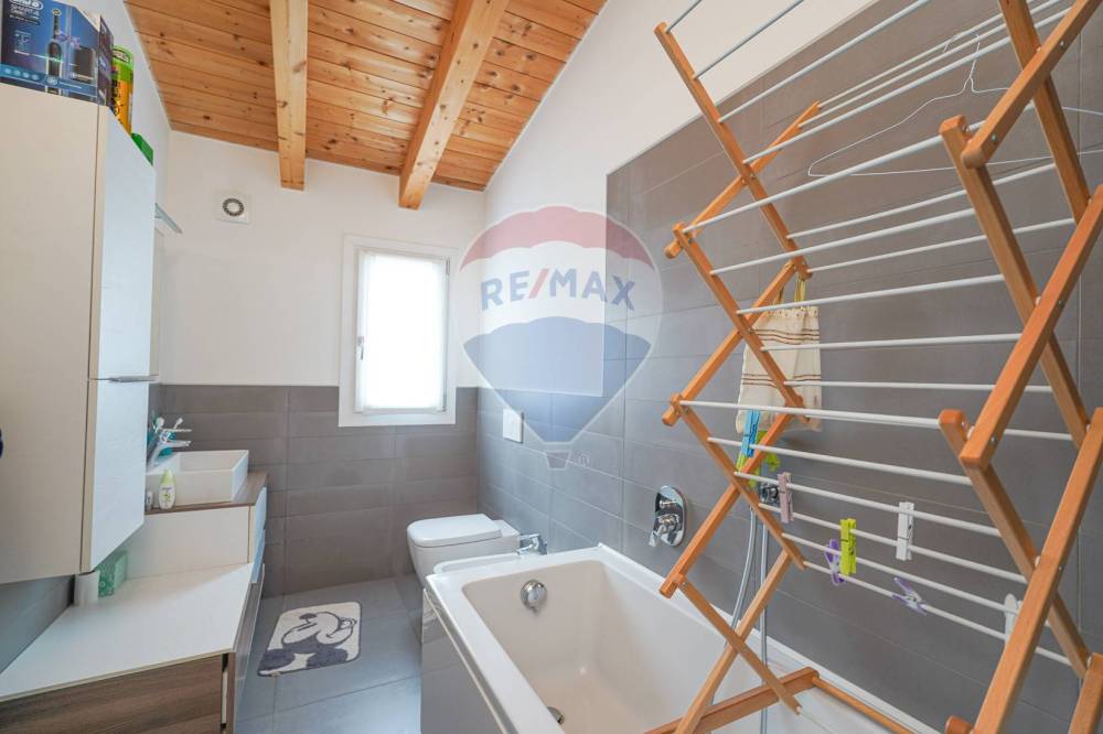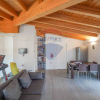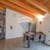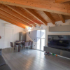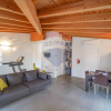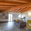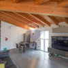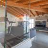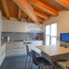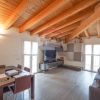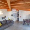 Gli interni sono accuratamente rifiniti con pavimento in parquet e travi a vista. La zona giorno si compone di un ampio soggiorno, mentre la cucina abitabile è dotata di piano cottura ad induzione. La zona notte include tre camere da letto, due bagni con sanitari sospesi, un piccolo ripostiglio e per finire un locale lavanderia; dai tre locali si accede direttamente al grande terrazzo che circonda l'immobile su quattro lati.
