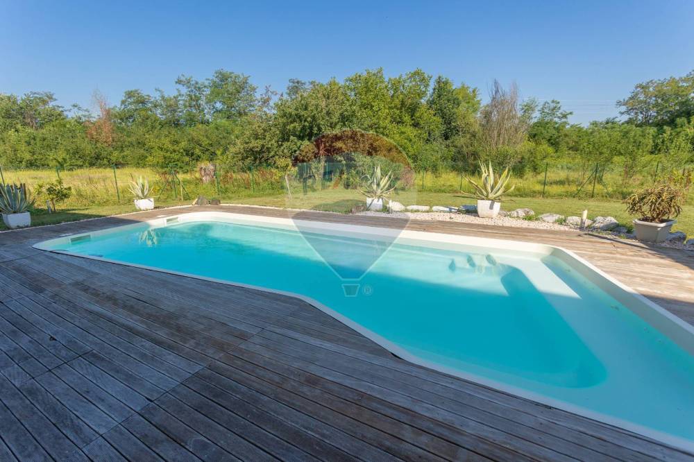 Lintera area di proprietà si estende per circa 2.000 mq, completamente recintata e ben curata. Il giardino sul fronte della villa accoglie gli ospiti con ampi spazi verdi, mentre sul retro si sviluppa la zona relax con piscina interrata in resina, incorniciata da un elegante camminamento in legno, ideale per trascorrere momenti di svago e convivialità durante la bella stagione. A lato si trova un fabbricato accessorio a servizio della casa e della piscina, perfetto come deposito per attrezzature da giardino, barbecue o come piccola cucina esterna per feste ed eventi.