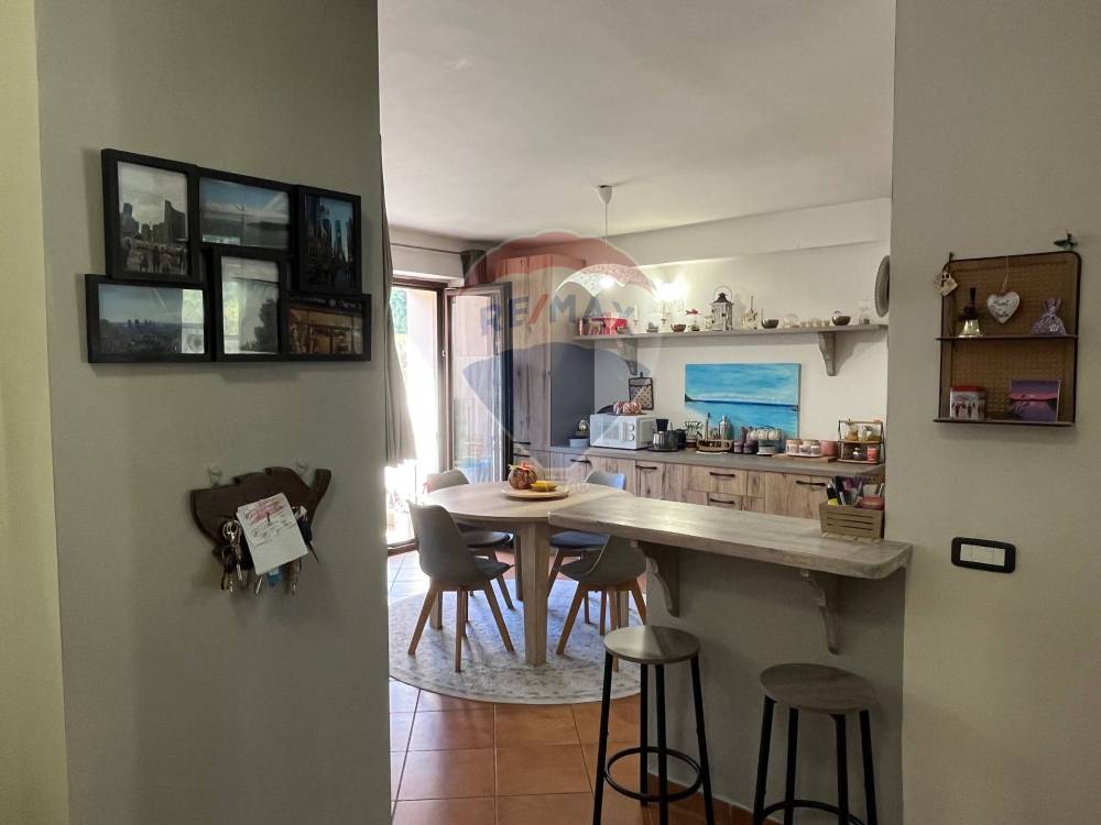 L'abitazione, di 83mq, è composta al primo livello da un'ampia camera da letto con balconcino, un bagno con doccia e sanitari sospesi, un comodo ripostiglio, una bellissima cucina a vista dotata di tutti i comfort con sala da pranzo e camino, da cui si accede ad un grazioso terrazzino. Tramite una comoda scala a chiocciola si sale al secondo livello, composto da un salottino, una grande camera da letto, un bagno con doccia e sanitari sospesi e una parte ad uso "soffitta".