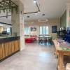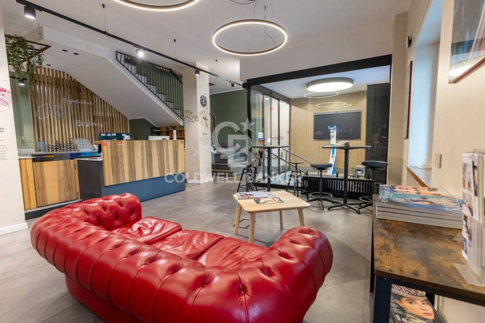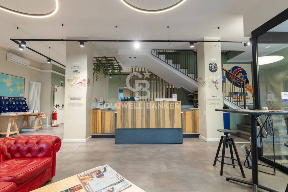 Al piano rialzato, con doppio accesso sia direttamente dalla strada con ingresso indipendente e sia dal pianerottolo condominiale, si apre una grande hall di ingresso con reception e zona attesa, un piacevole angolo bar o area relax, due uffici e un ampio bagno.