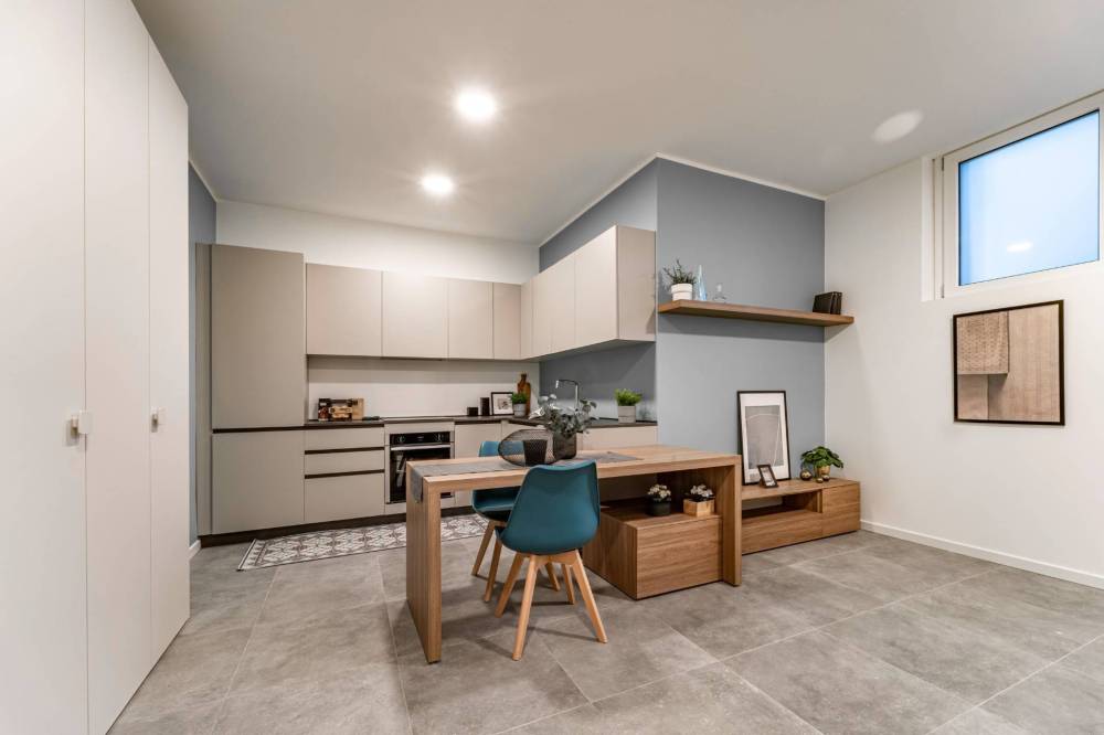 Cucina ad induzione, produzione acqua calda con boiler elettrico, riscaldamento centralizzato a pavimento con ripartitore e contabilizzazione del consumo, predisposizione aria condizionata e allarme.