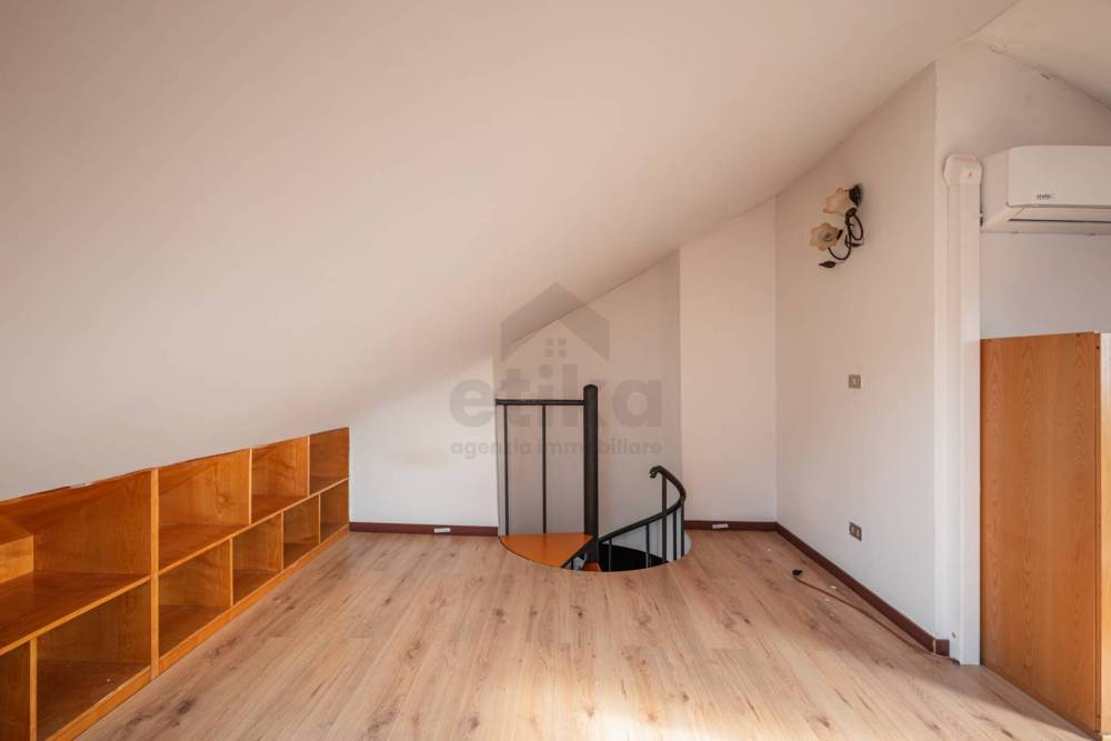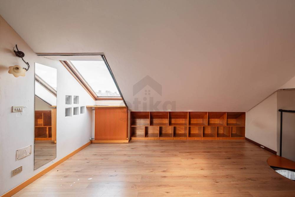 Inoltre abbiamo delle scale a chiocciola che ci conducono ad una mansarda illuminata da due ampi velux, che è possibile utilizzarla provvisoriamente come camera degli ospiti o semplicemente come magazzino.