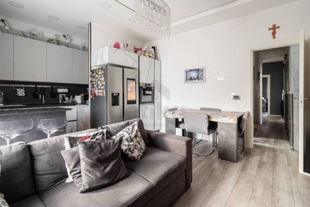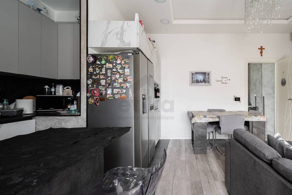 L'appartamento ha un ingresso indipendente con portoncino blindato e delle scale che portano direttamente al piano primo dove troviamo: un open-space con cucina a vista moderna e con penisola, illuminata dalle vetrate che conducono ad un terrazzo, il tutto esposto a sud.